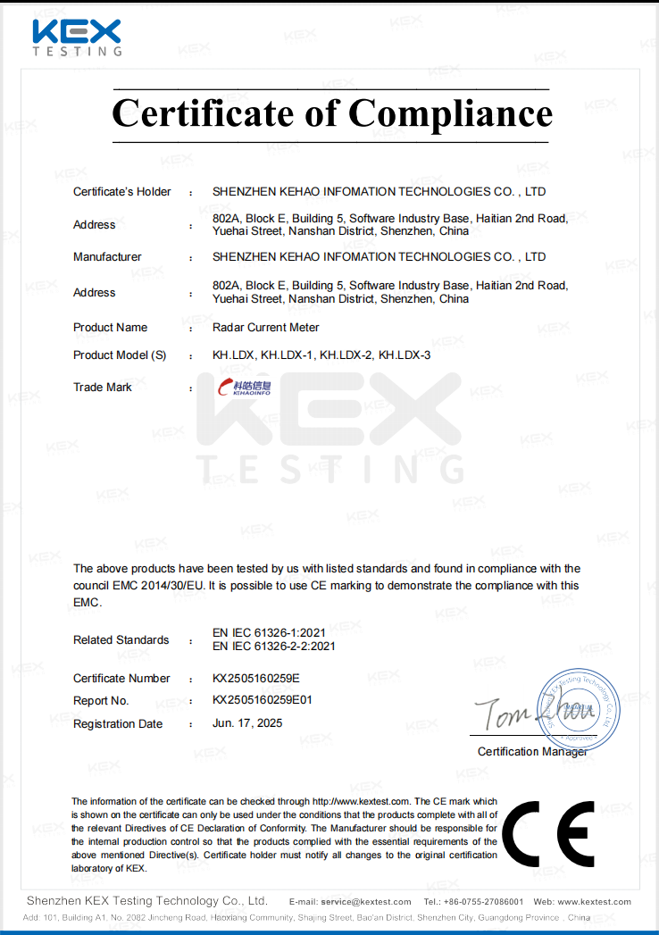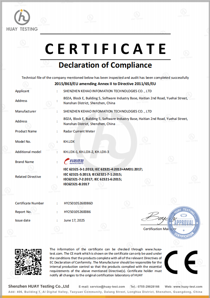 The KH.LDX Non-Contact Radar Current Meter is a high-precision flow velocity monitoring instrument designed for hydrological observation, flood forecasting, and smart water management applications. Utilizing advanced microwave radar technology, it provides accurate, reliable, and real-time flow velocity data for rivers, open channels, culverts, and urban stormwater drainage systems.